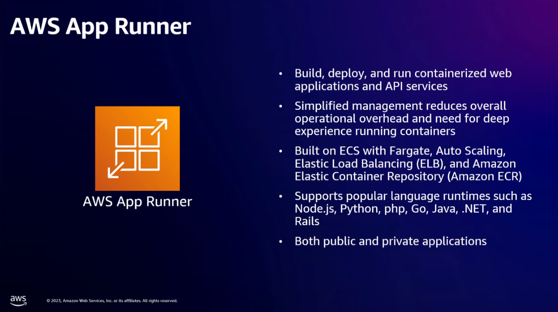 - Look for "best fit" technologies based on need. App Runner might not work for you, and that's fine.