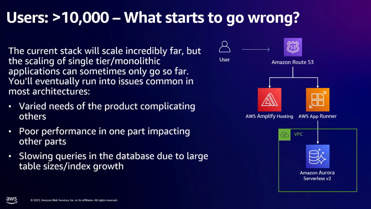 - Things will start to break. Mainly because our architecture is still monolithic.