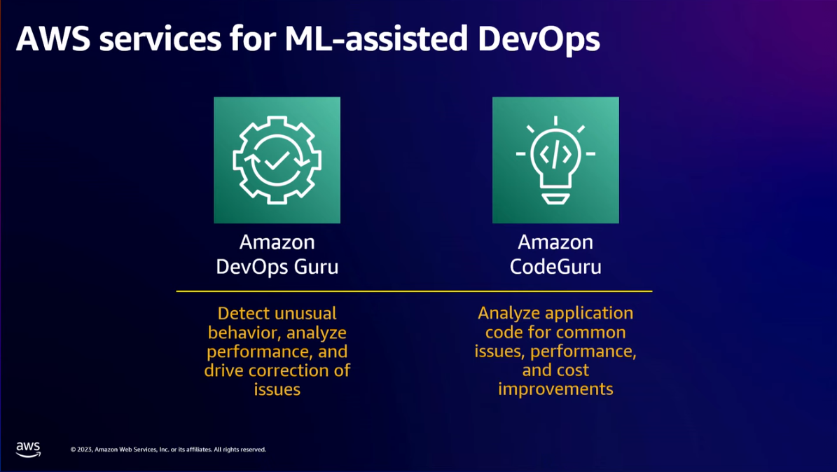 - Leverage ML to assist you e.g. Amazon DevOps Guru and Amazon CodeGuru.